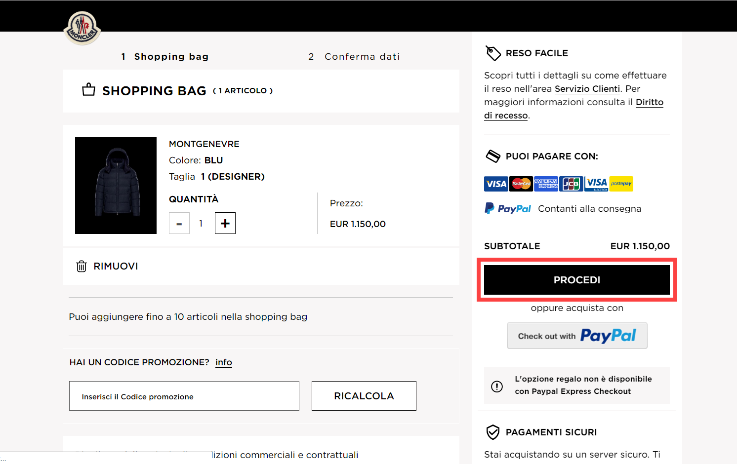 Step6. 到購物車中確認商品,點選「PROCEDI」進行結帳。