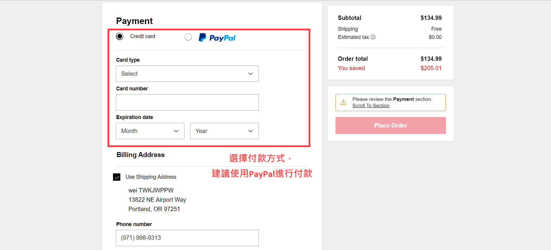 Step7. 選擇付款方式(建議使用PayPal付款可大幅降低被砍單機率)