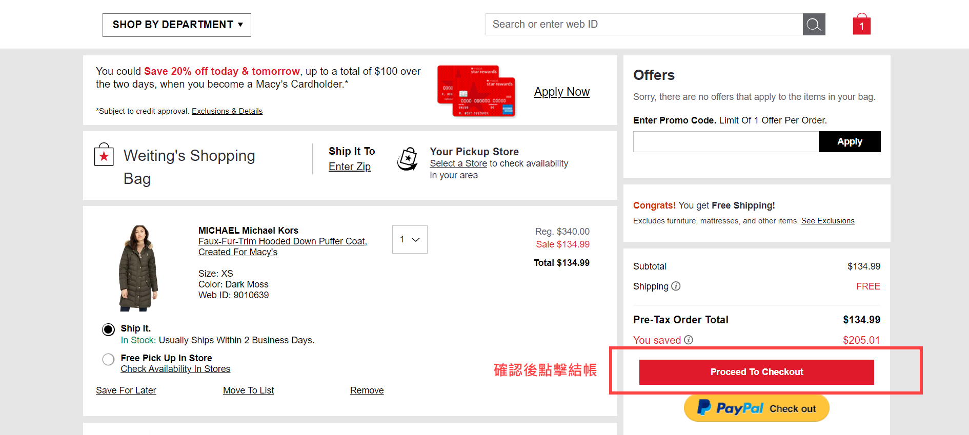 🔗同場加映: 【美國Macy’s購物集運教學】如何使用BuyandShip國際代運購買美國Macy’s百貨