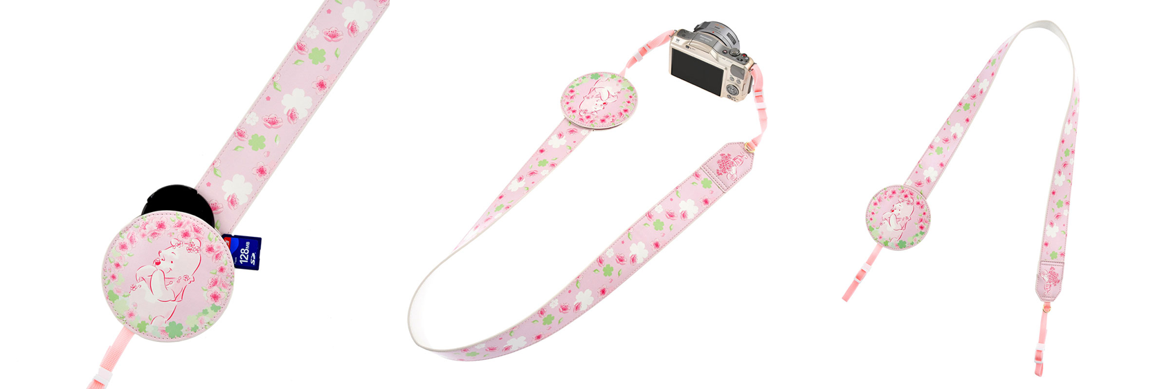竟然連相機背袋都有!!!粉嫩的櫻花造型、可愛的小熊維尼,裝上去整個相機的可愛度馬上大提升,拿出來絕對成為眾人焦點!背袋上還有一個小小的收納空間,記憶卡或鏡頭的蓋子不見啦~相機背袋的售價是¥2090(約台幣555元),還不快入手!