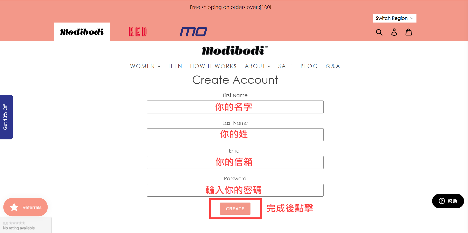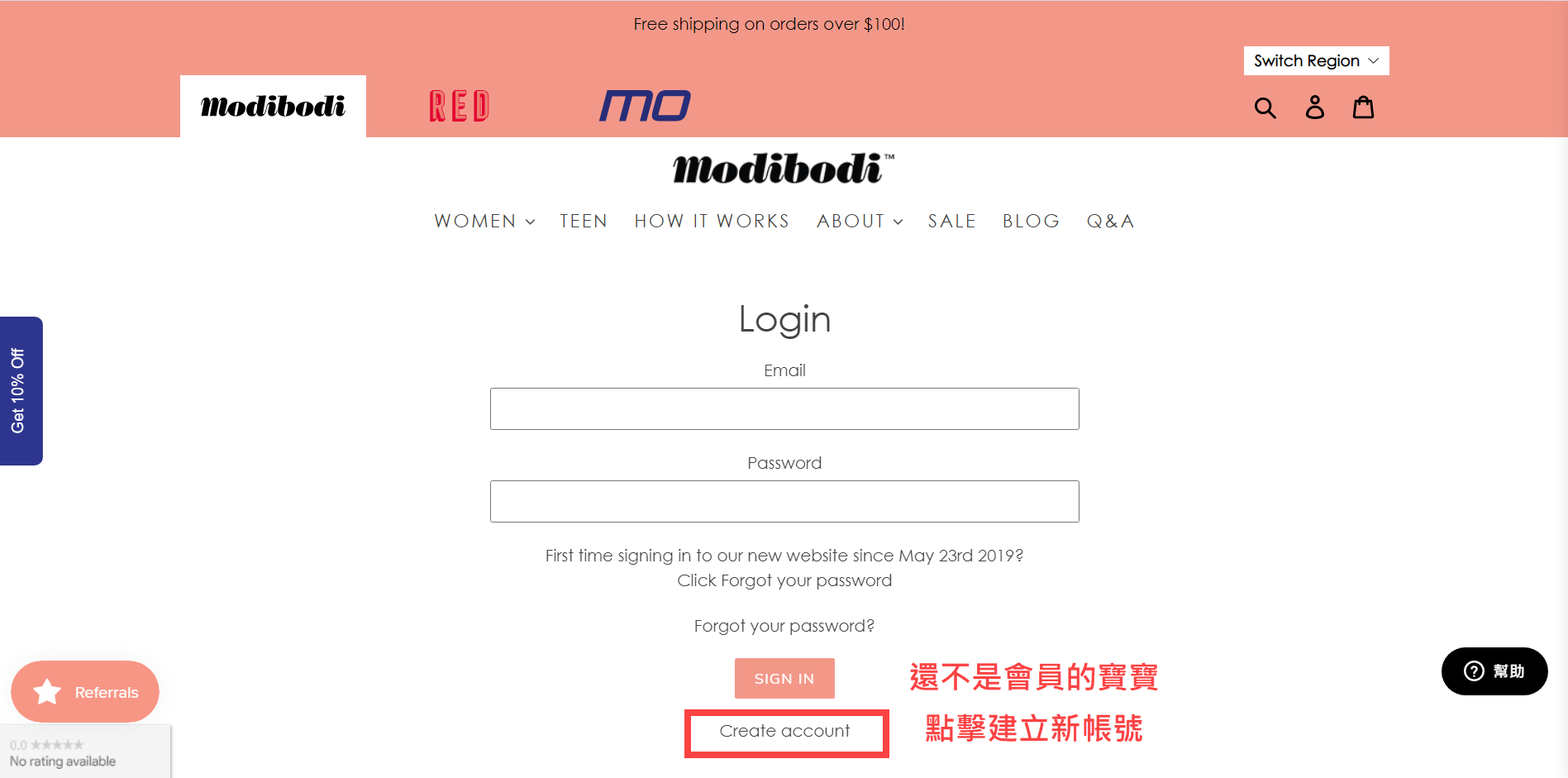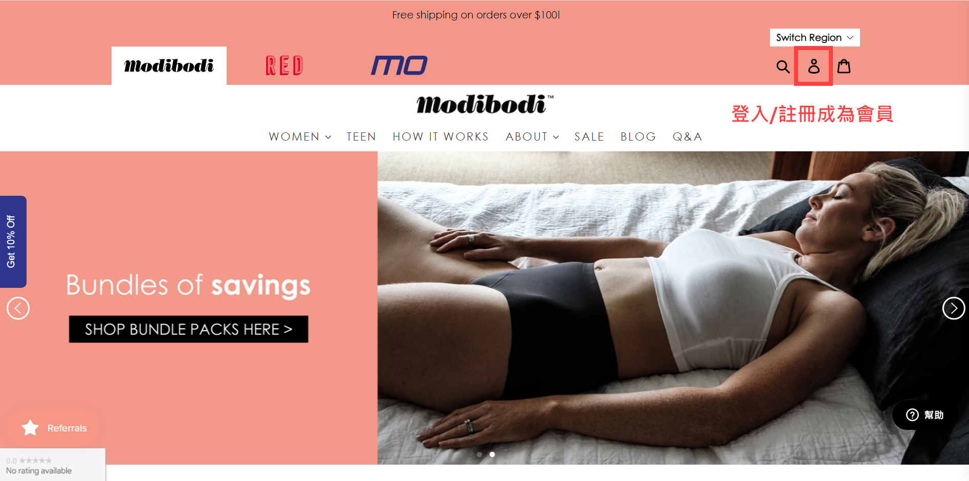 Step2. 到澳洲Modibodi官網,並且註冊/登入會員(可參照下圖申辦會員)