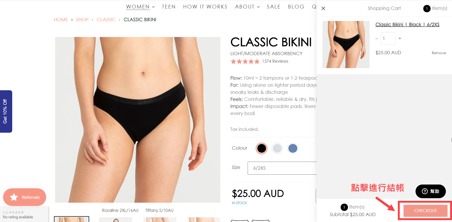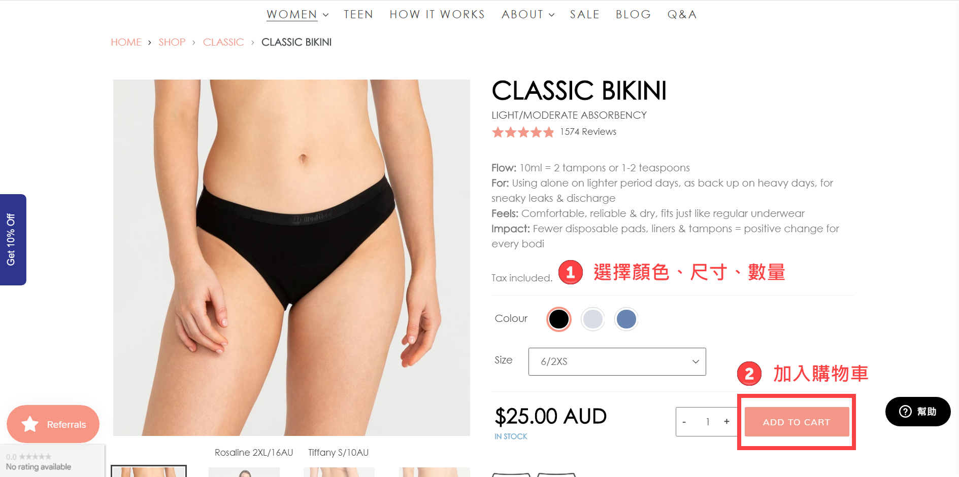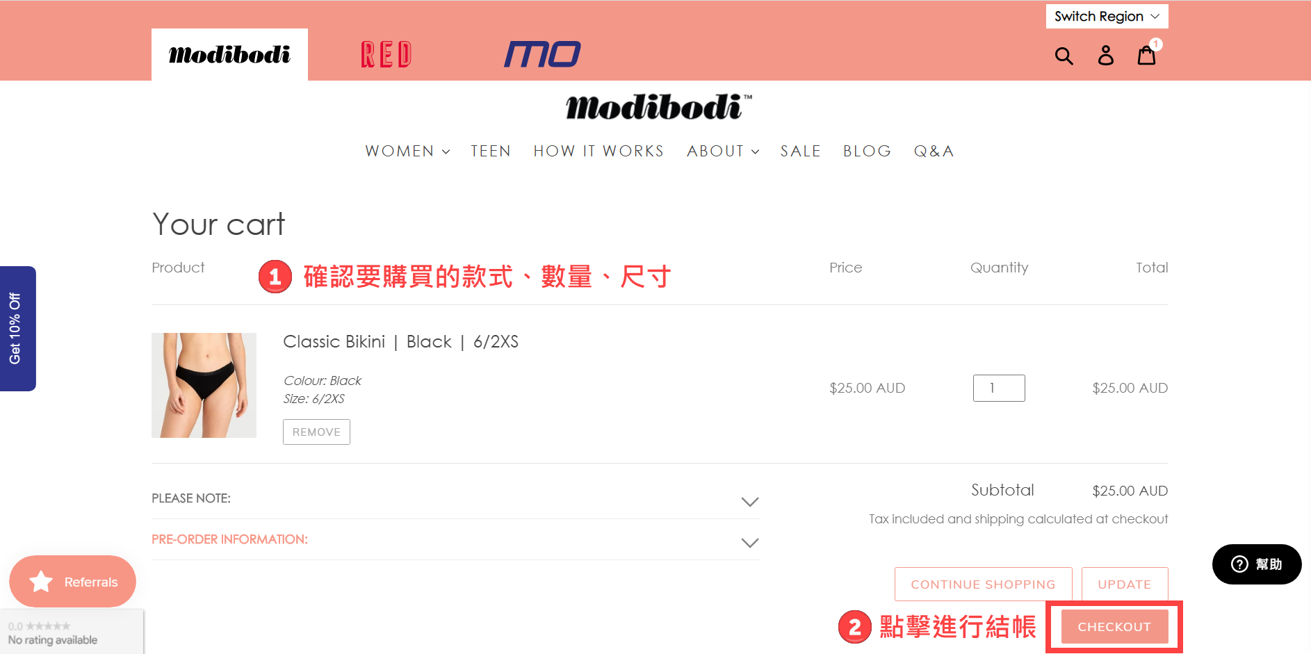 🔗到澳洲Modibodi官網購買,體驗最舒適的生理期!注意一定要將右上角的國別改成澳洲,才是最划算的價格喔!!