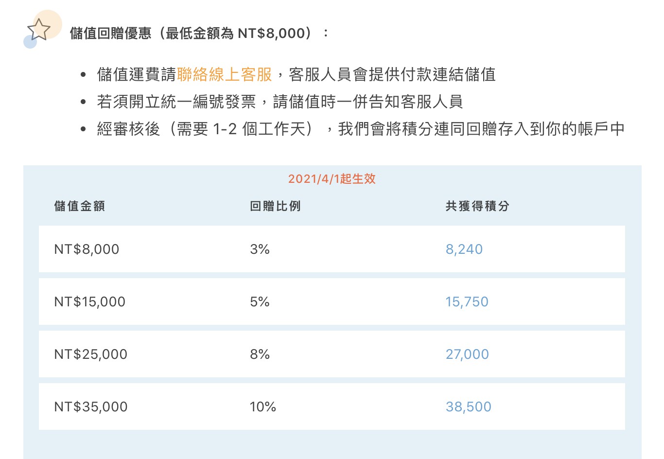 超大方的回饋比例高達3%~10%,也就是最多儲值運費NT35,000,即可享有38,500運費積分,根本就是儲多多也賺多多呀!若有需要開立具有統一編號發票的代購業者也歡迎儲值時與我們的客服聯繫。