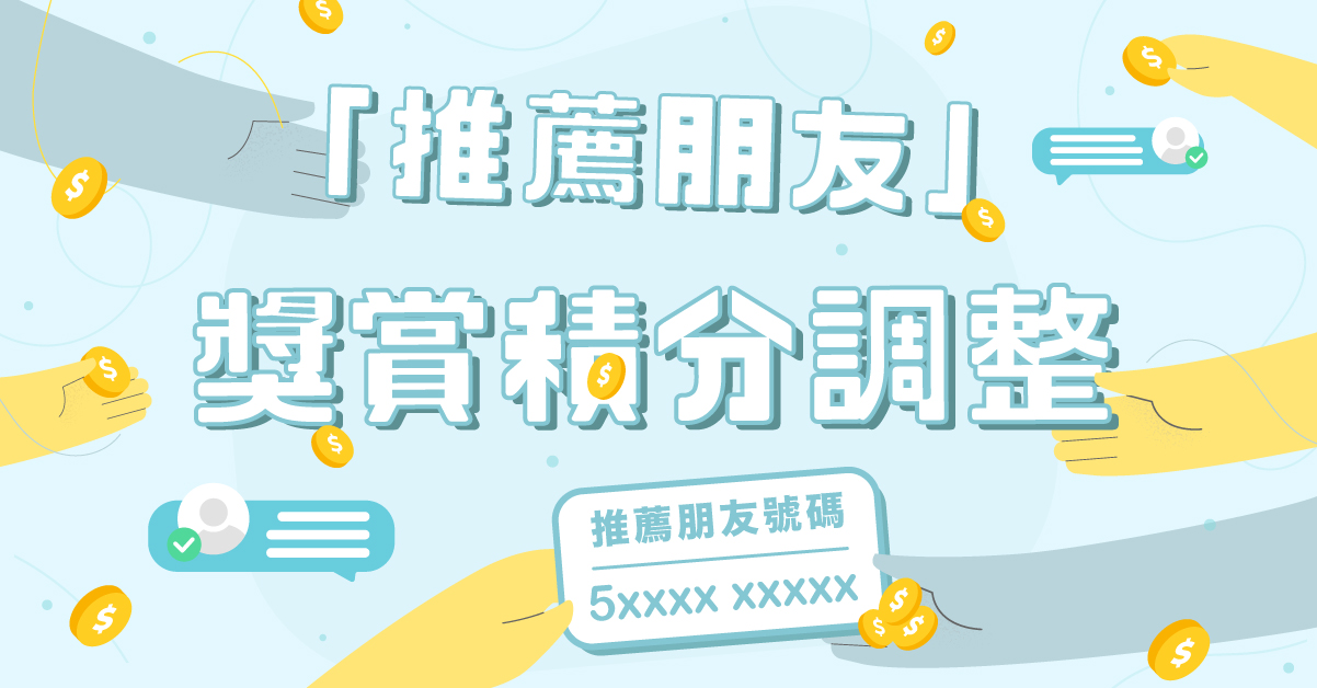 2021 年 5 月 17 日 00:00 起,「推薦朋友」計劃的獎賞積分將調整為 120 積分,以被推薦者完成首張轉運單的時間計算。
