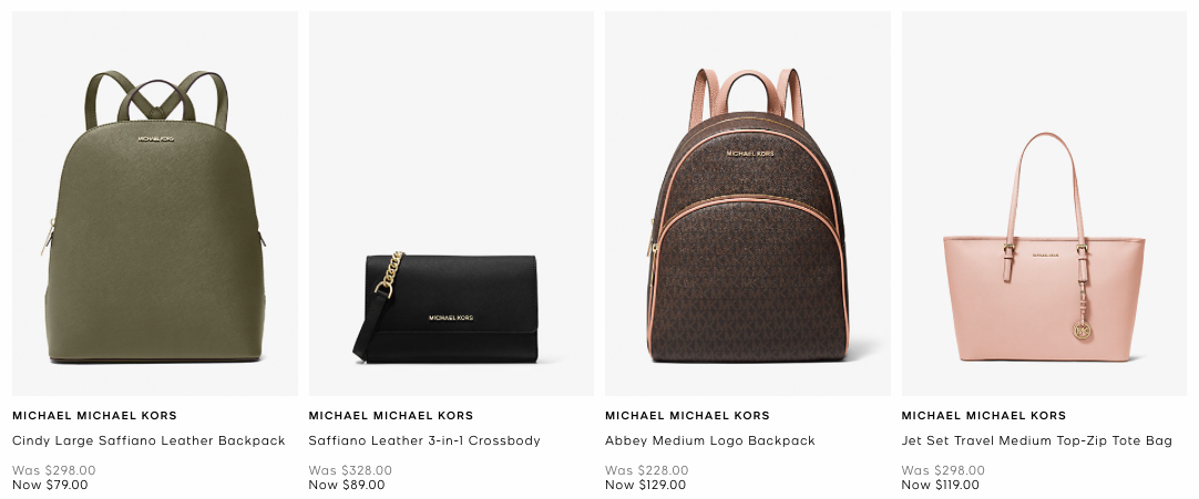 Michael Kors美國官網折扣區商品多樣化,價錢幾乎都是半價起跳!定價就已經比台灣便宜,Sale區3折起的優惠打下來更是讓你划算到不要不要的~跟台灣通通是傻眼貓咪扯價差,快手刀搶購!