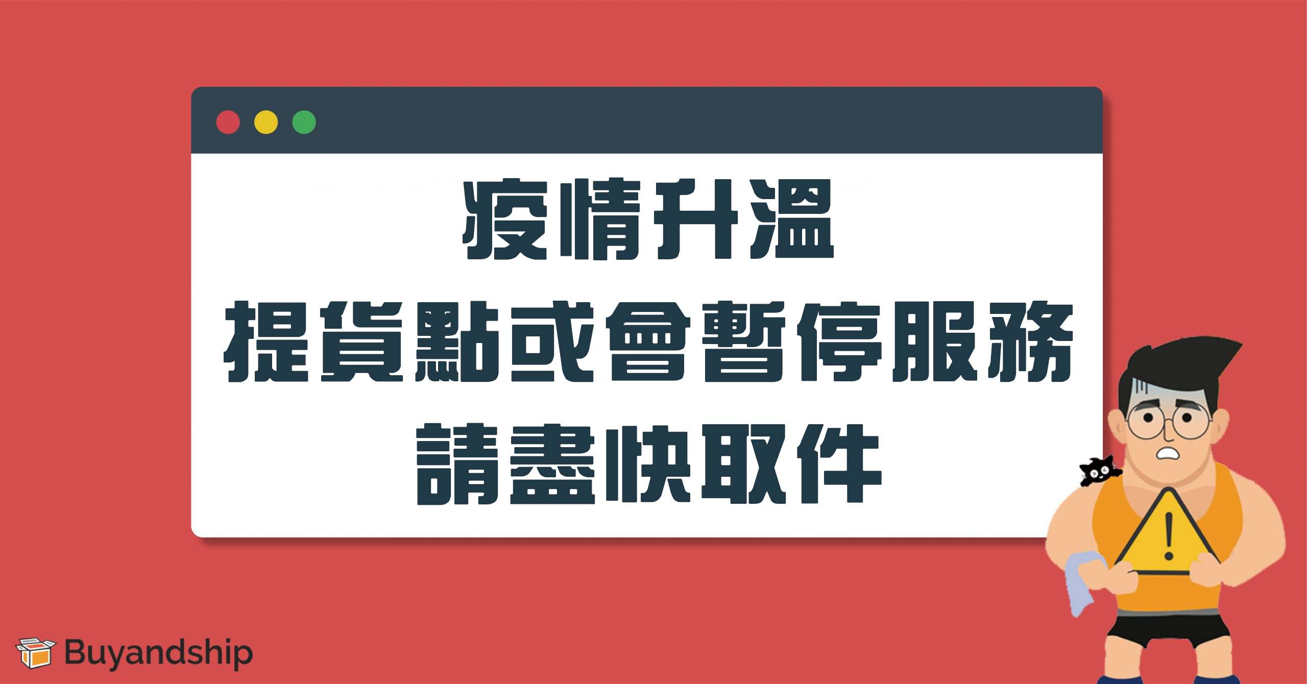 因應台灣疫情警戒提升,Buyandship 將暫不提供提貨點自取服務的選項,直至另行通知,敬請留意。