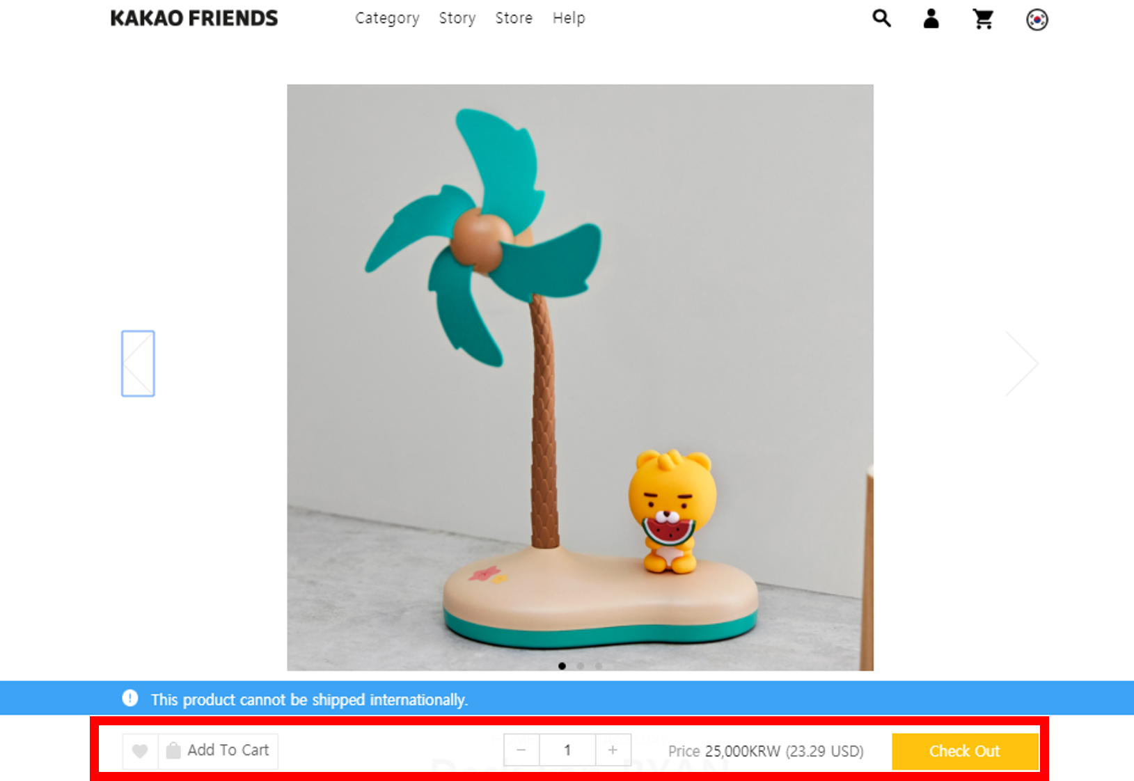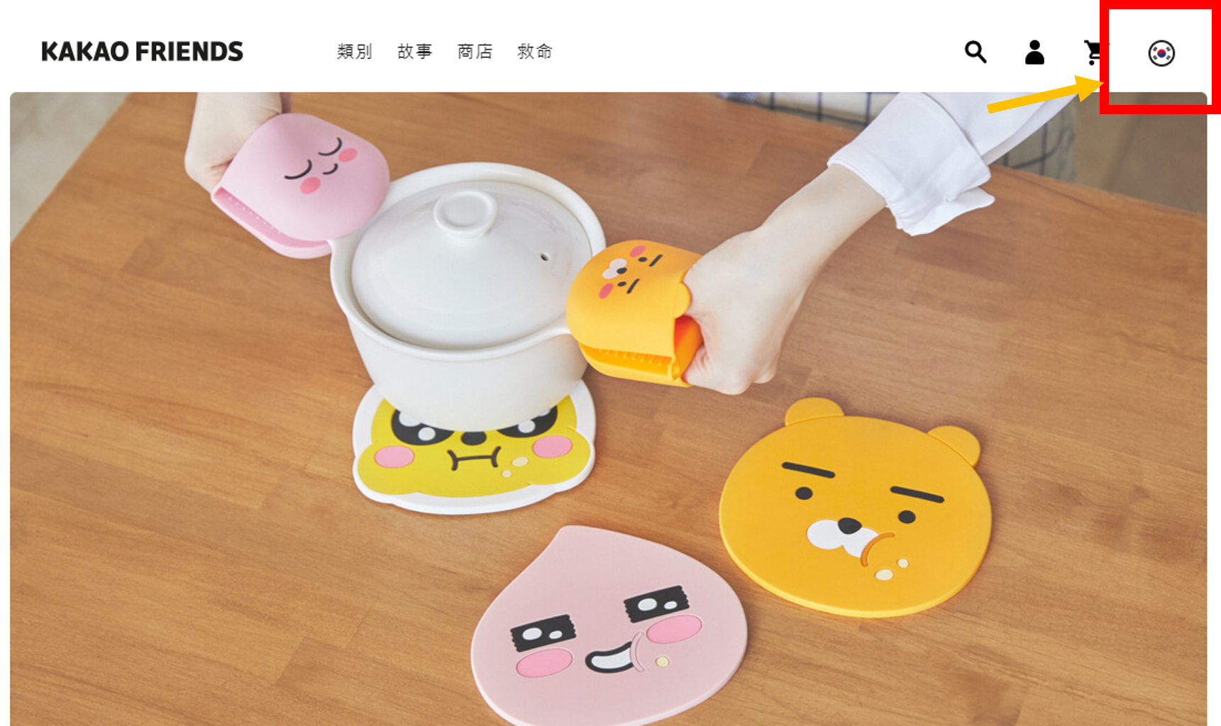 Step2. 到KAKAO FRIENDS官網去盡情購物,記得先選擇國家為韓國喔!