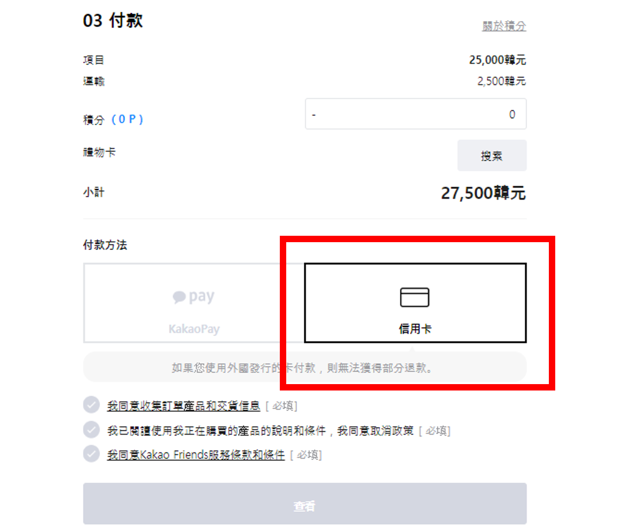 Step5. 接著確認購買金額、輸入收件資料,送貨地址請填Buyandship韓國倉庫地址,記得在姓氏欄位要填寫Buyandship 會員編號喔!選擇信用卡付款!