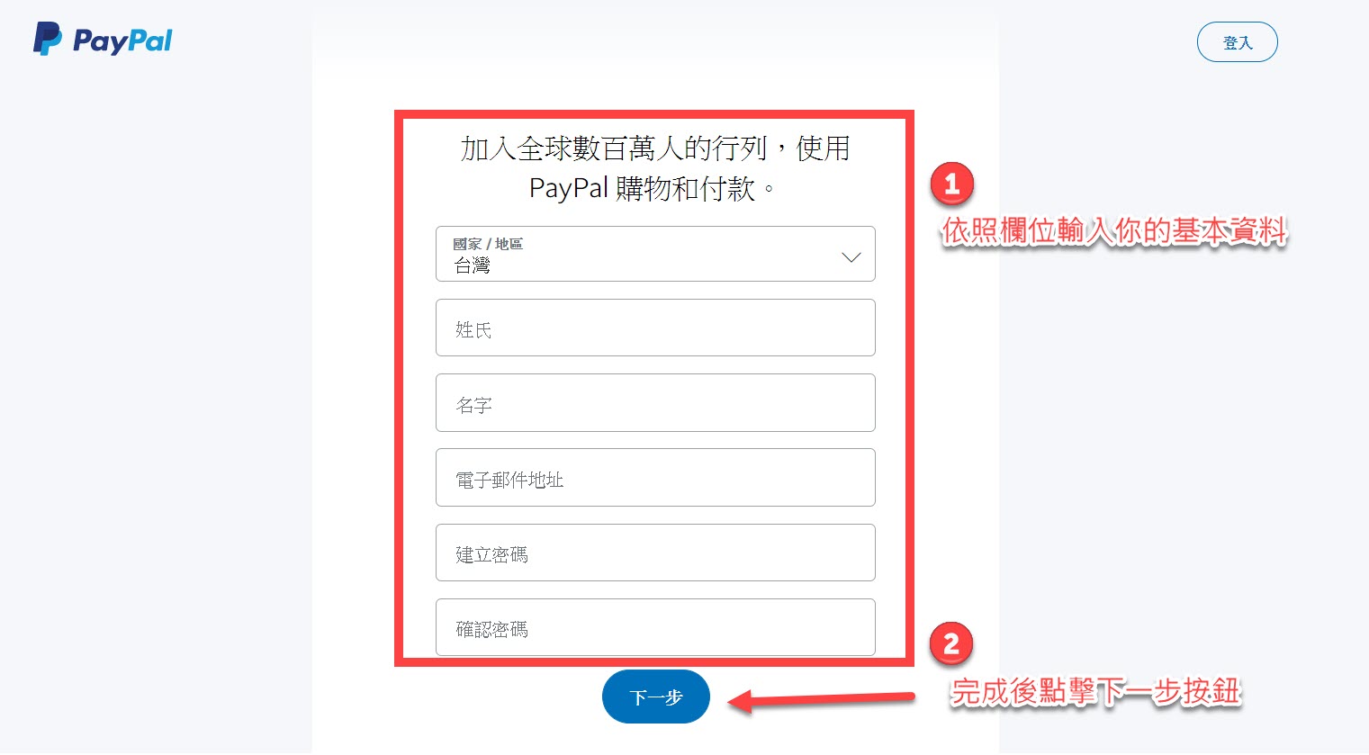 Step3. 依照欄位輸入你的資本資料後,點擊下一步。