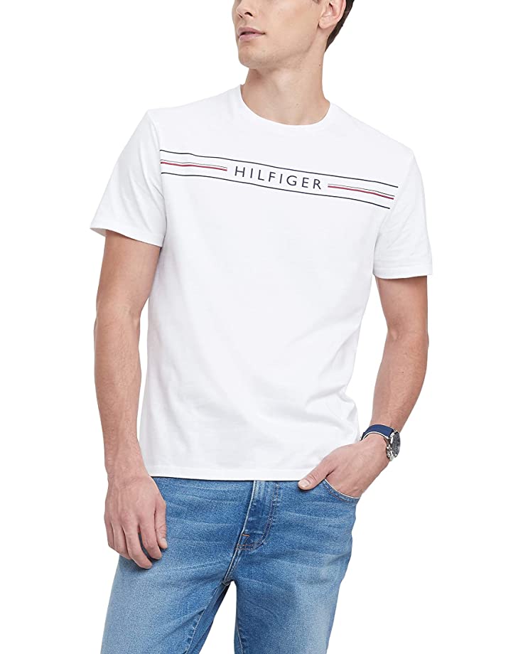 最百搭的 Tommy Hilfiger 的圓領白 Tee,衣櫃裡的必備款,由 100% 純棉製成,胸前飾有品牌標誌,不知道穿甚麼的時侯,穿白 Tee 就不會有錯了!
