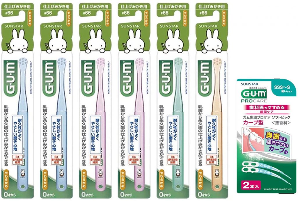 GUM Dental Children’s Toothbrush #66 [Finishing / Softness] 6 Pack + Bonus