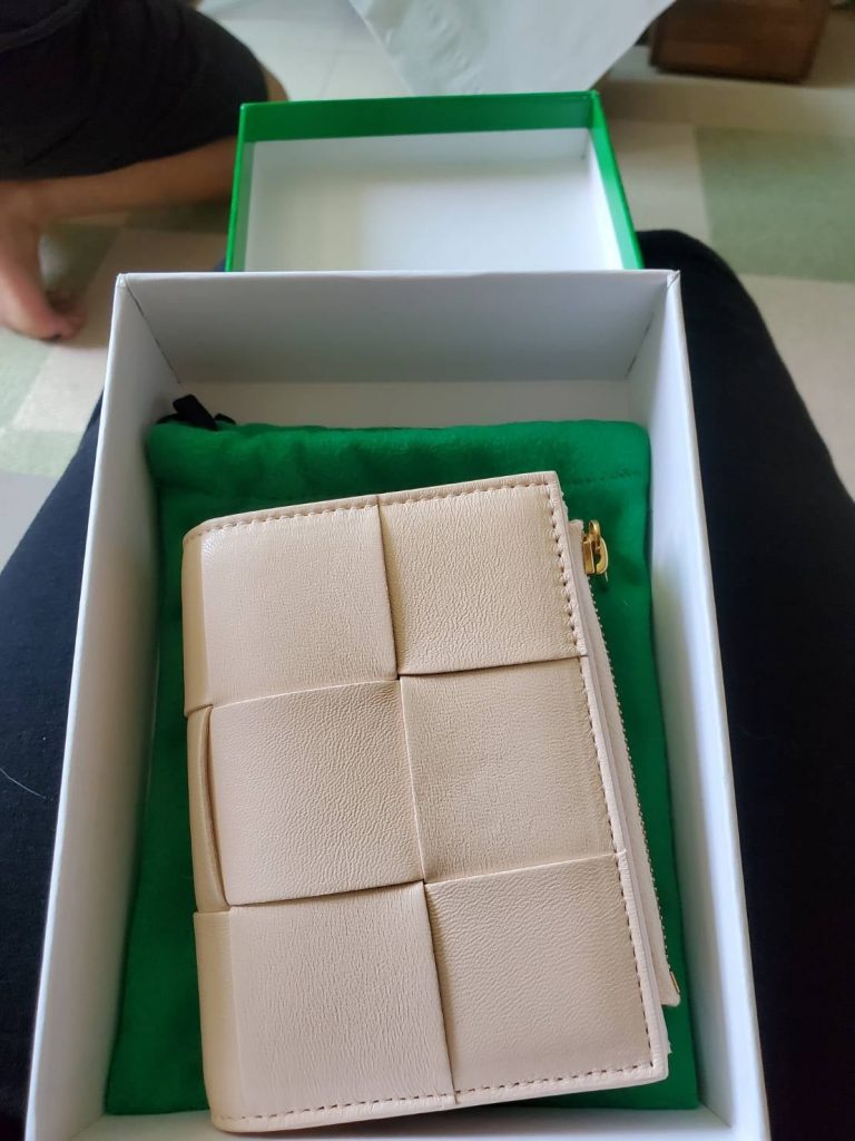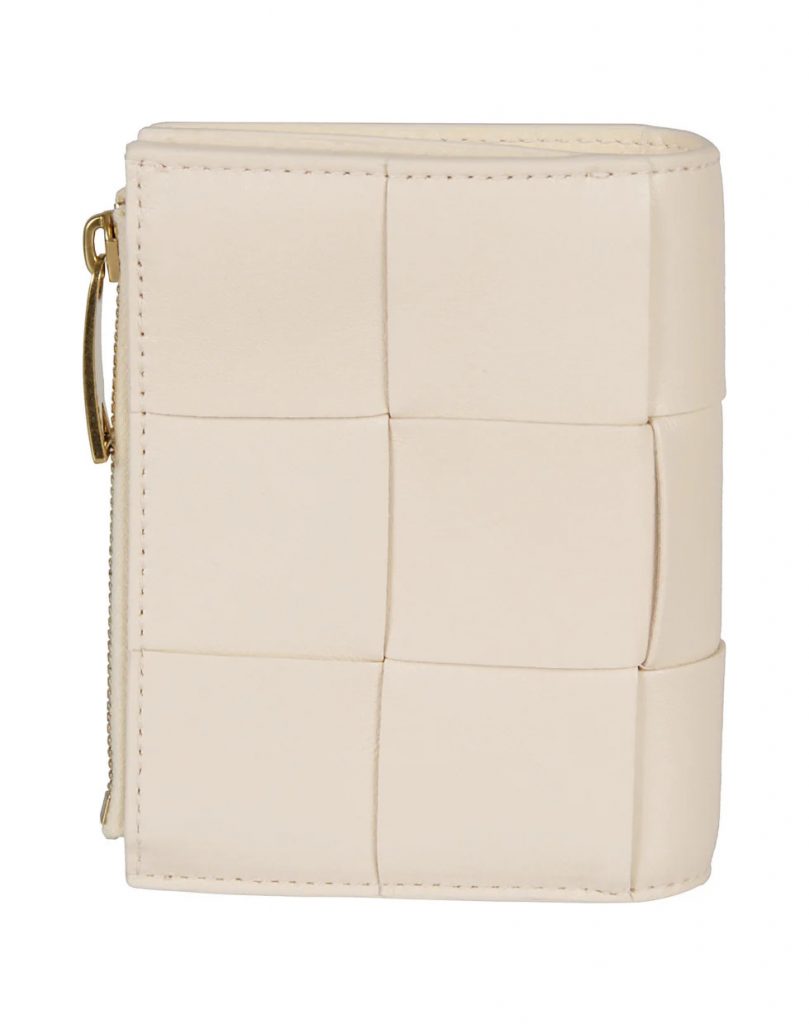 這款錢包是品牌「Cassette」系列中的一員,是同系列的單肩包的迷你縮影。採用柔軟皮革手工編織而成,採用品牌著名的 intrecciato 編織技術,配有拉鍊隔層,可妥善保管零錢。打開錢包有一格紙幣槽、六個卡槽和收據袋。