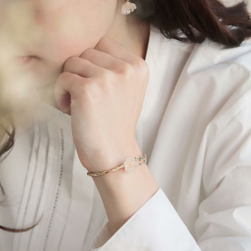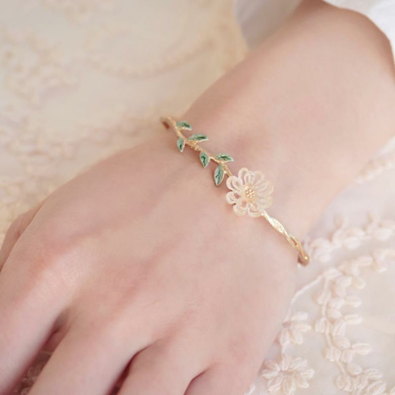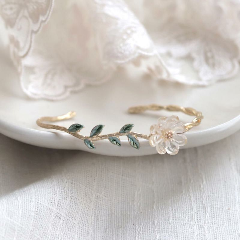 這款手環美到要淪陷了!半透明的花瓣加上金線綑邊,與花莖相呼應,手環採用不規則線條仿造花莖設計,彷彿真的將一束花環套在手上,一定要入手!