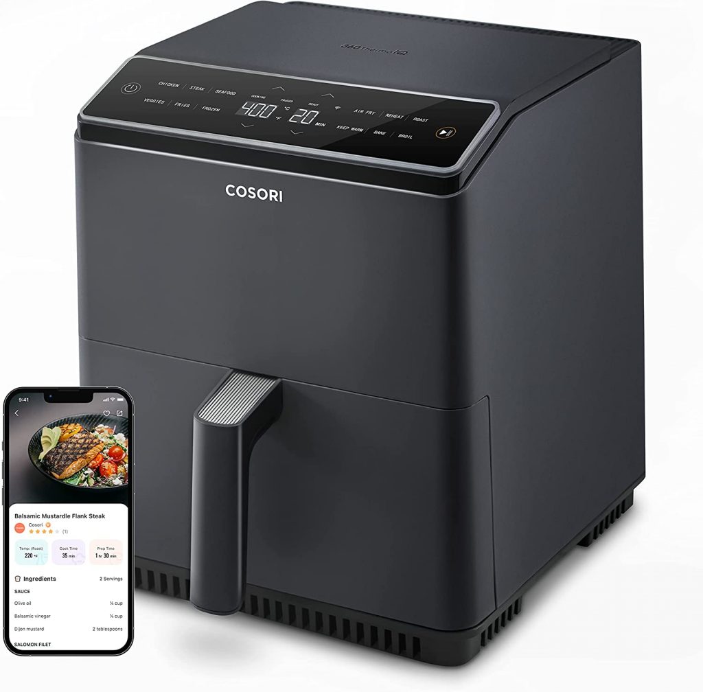 運用 360 THERMOIQ 技術,加熱元件可烹飪過程中進行實時溫度調節,並具有比上一款氣炸鍋更大的 6.8 QT容量,這一款氣炸鍋的籃子足以放下 17 隻雞翼!你亦可以透過免費的 VeSync 應用程序遠程控制氣炸鍋及監控烹飪進度。