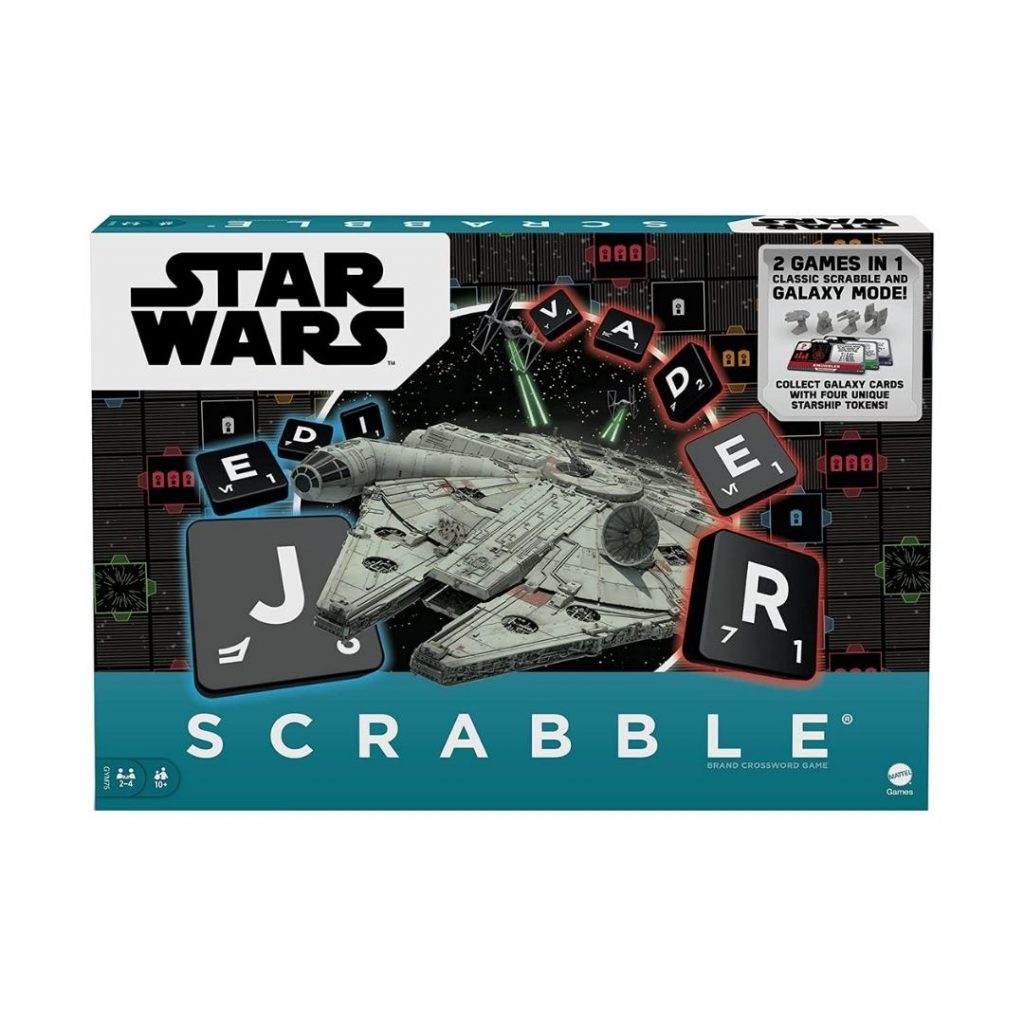 連字母圖塊也很特別的星際大戰特別版 Scrabble 拼字遊戲,這個版本有一個特別的詞彙表,其中包含可以星球大戰術語!