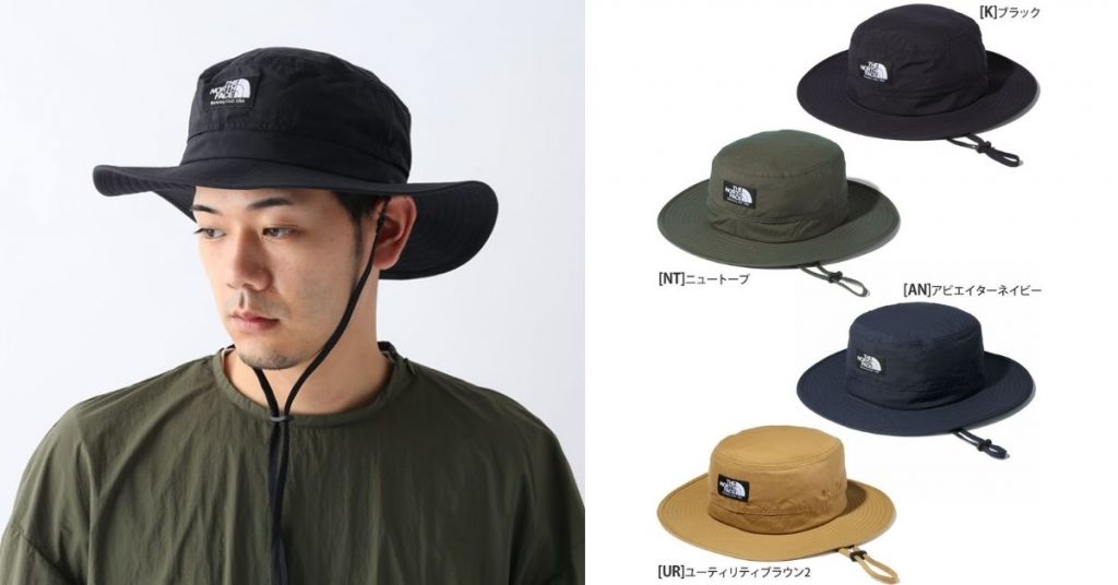 日版北臉限定的漁夫帽、登山帽,寬邊設計能更大面積阻擋陽光,面料具備防 UV 設計。