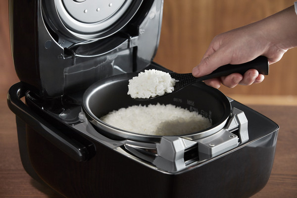 「象印」是電子鍋界名牌,而「炎舞炊き」系列的 NW-KB10,特色是將傳統只有單區加熱的 IH 線圈升級到三個可獨立控制加熱的 IH 線圈。並首創將鐵器包入不鏽鋼、鋁層中的「豪炎灶釜內鍋」,有更好的發熱、熱傳導效率,內層白金鍍層,可引出米飯甘甜。還能依照喜好調整柔軟度、黏性,煮出來的米飯更對家人的口味,相當智慧!