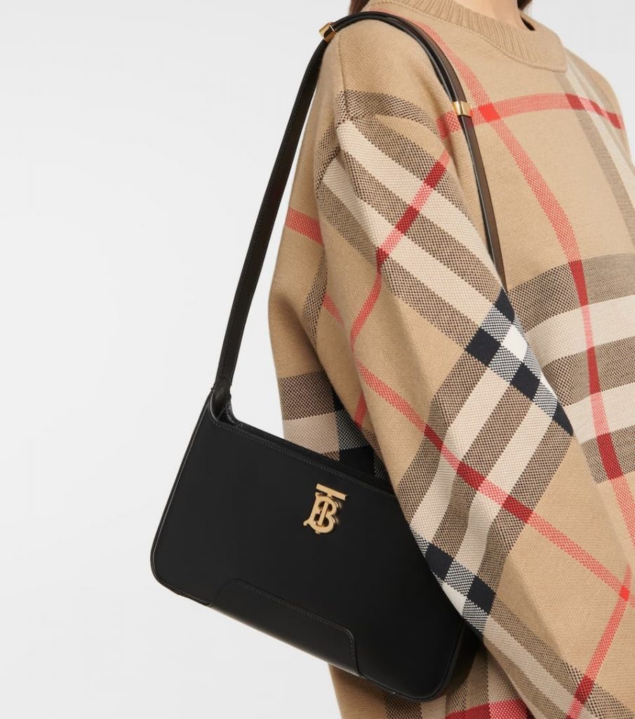 硬挺立體的光滑皮革肩背包,飾有 Thomas Burberry 花押字。設有調整式肩背帶,可隨意變換造型。