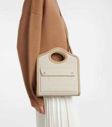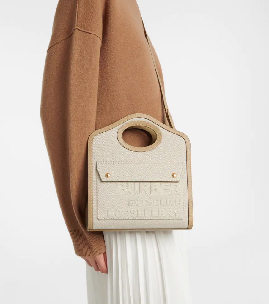 BURBERRY Pocket Mini leather-trimmed canvas tote