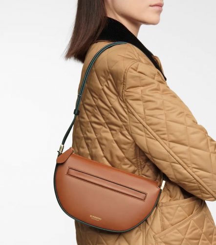 硬挺纖窄的時裝秀肩背包,以雙色調義大利鞣製光滑皮革製成,採用圓弧形設計,靈感源自倫敦 Olympia 展示場建築。設有鍍金配件和外部插袋和拉鍊口袋,能輕鬆存取用品。