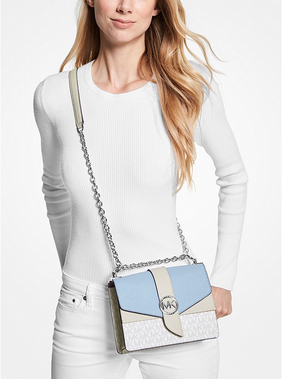 Greenwich Small Two-Tone Logo and Saffiano Leather Crossbody Bag