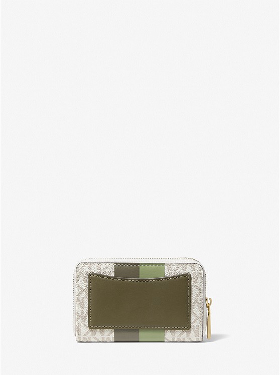 這款標誌性印花帆布錢包採用緊湊型拉鍊設計,帶有運動條紋,錢包內設多個卡位和存放現金的空間,於背部更設有外部插袋,方便用家擺放如交通卡、信用卡等常用卡。 網站亦有推出同款的長錢包設計。
