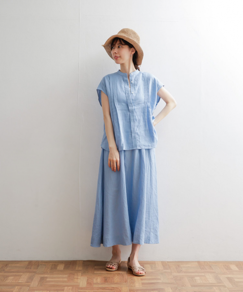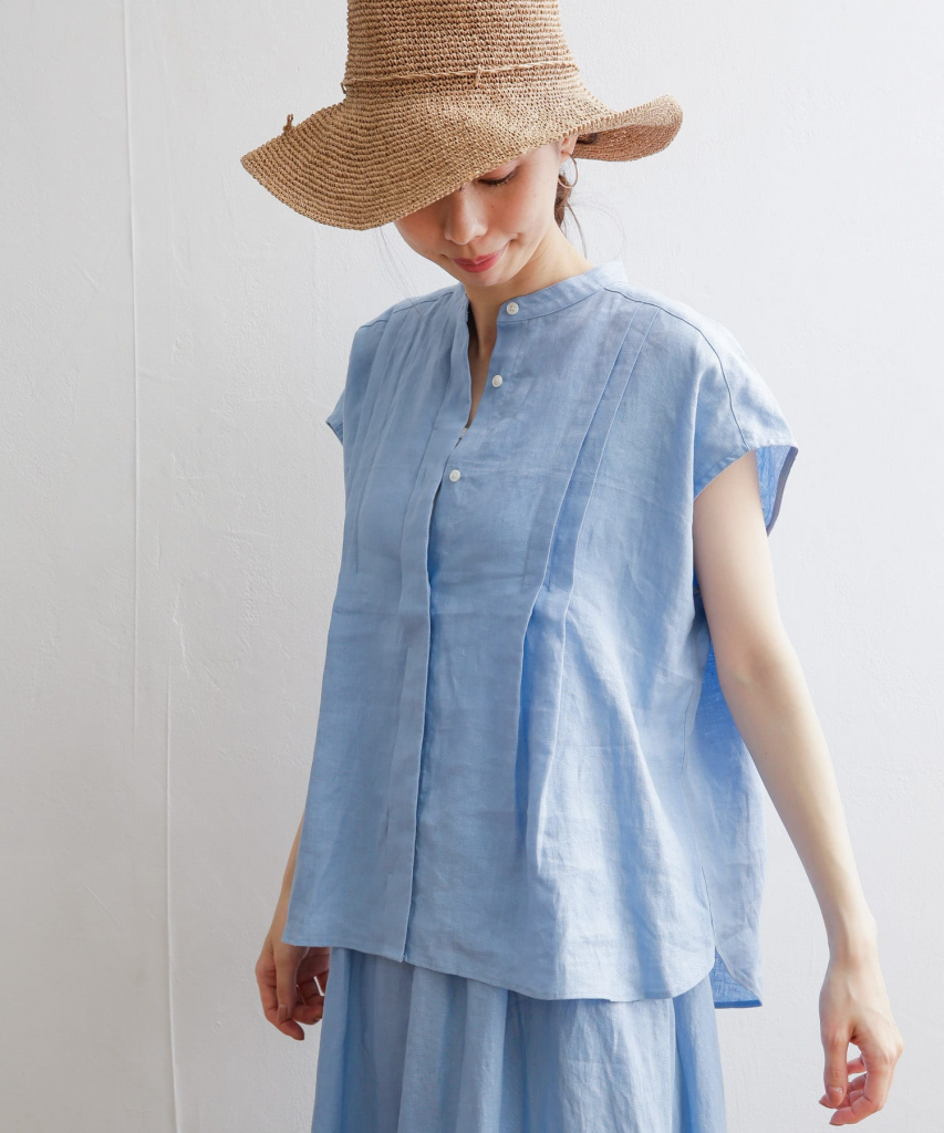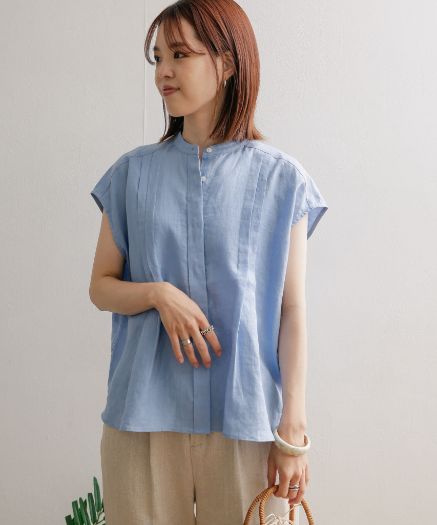 夏日氛圍的鮮明色系法式袖罩衫,選用涼爽亞麻材質,正面及背面褶子設計呈現出立體輪廓線條,不會過於蓬鬆,給人柔和印象~