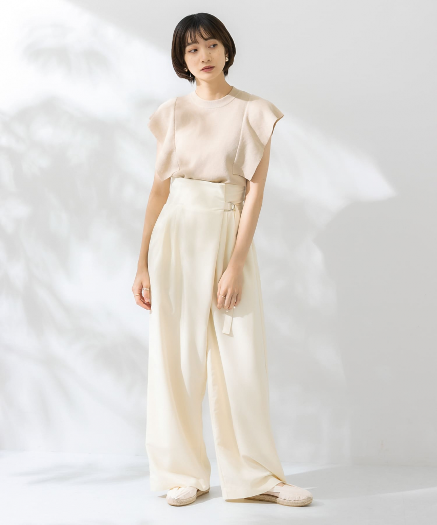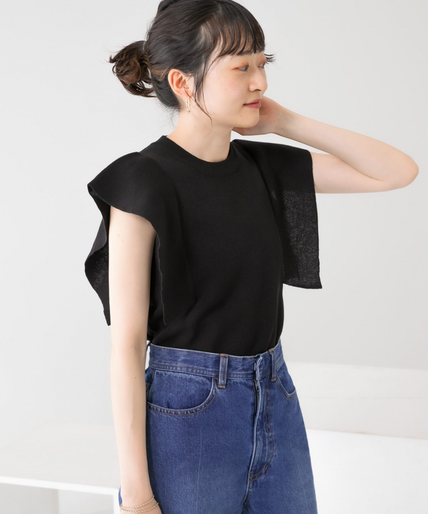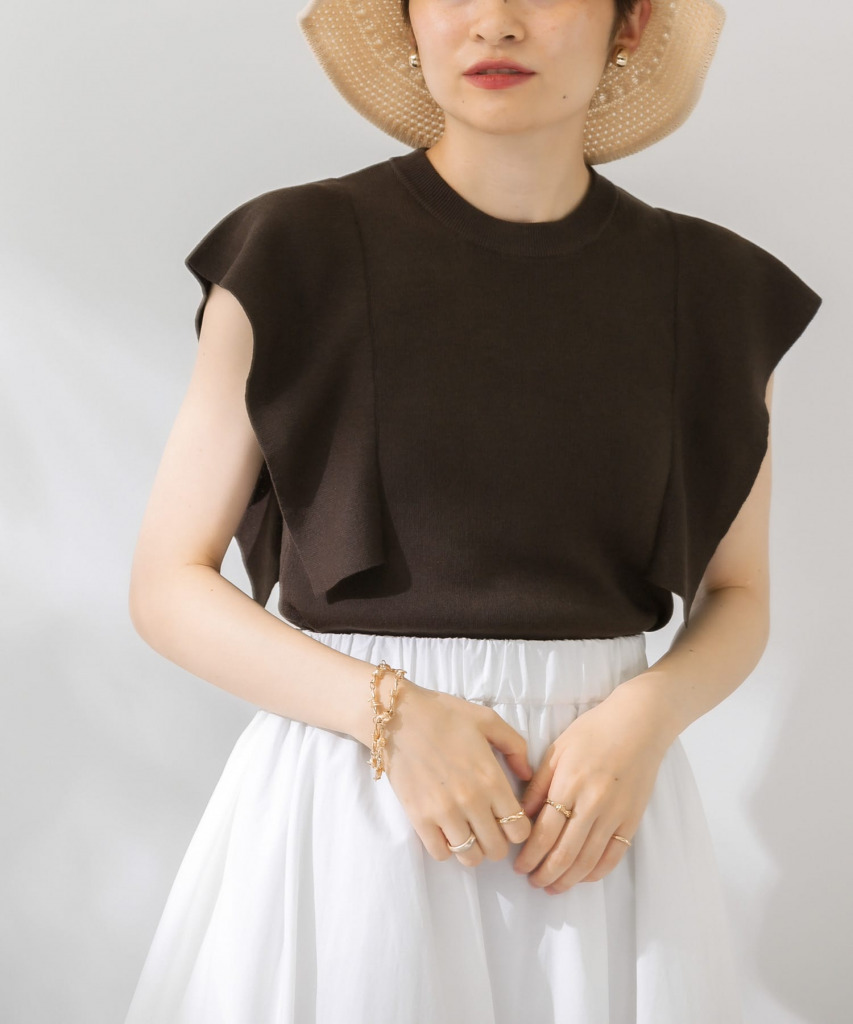 能搭配各種下身單品的合身針織衫!袖子傘狀設計能修飾手臂,不喜歡無袖的人也能輕鬆穿著!