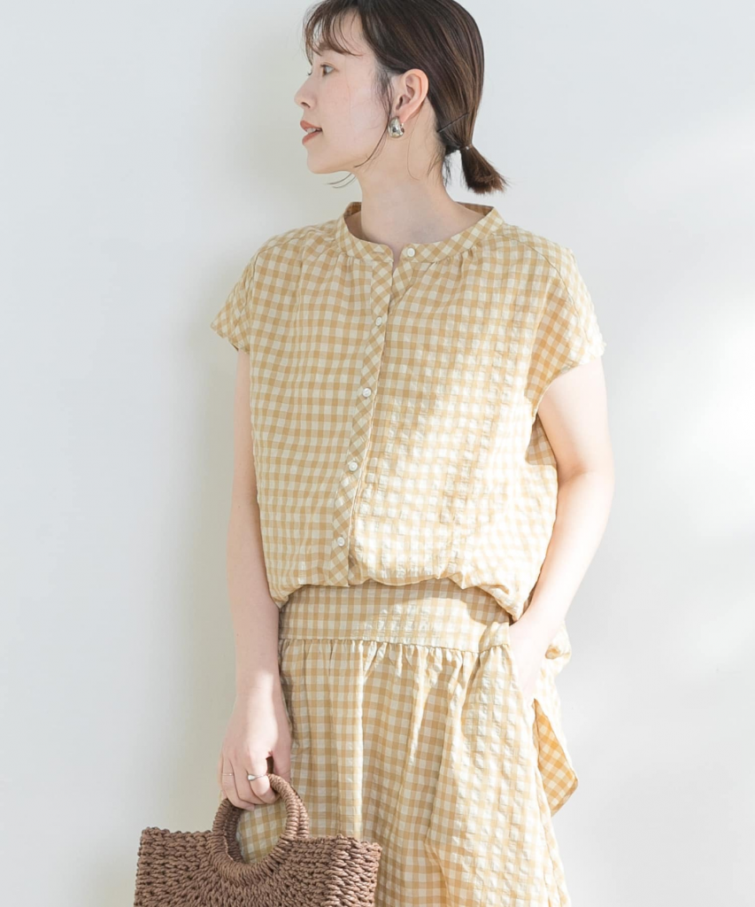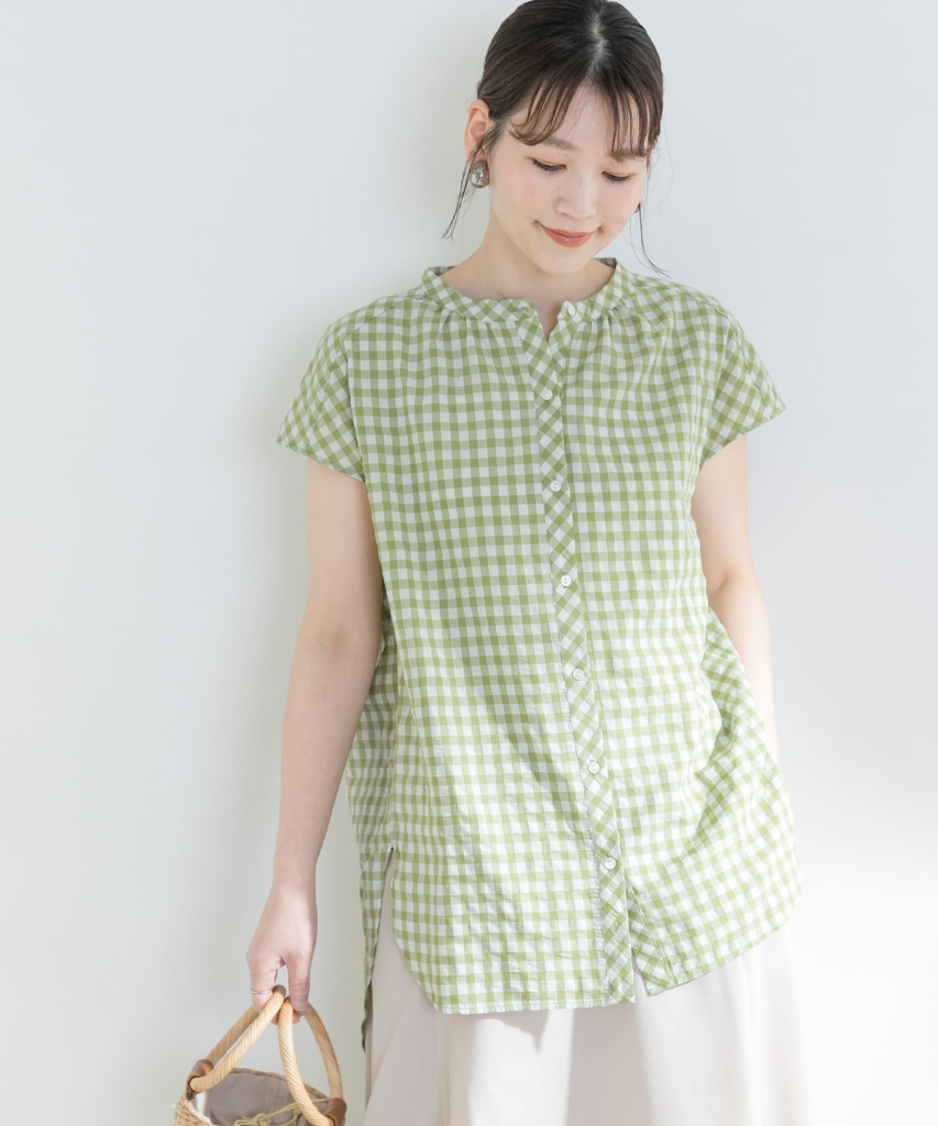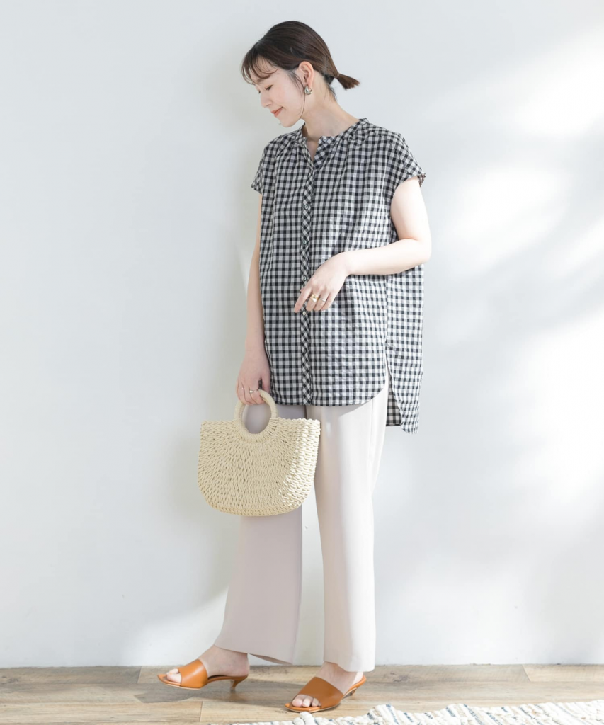 輕盈柔滑的質料,夏季穿著也很舒適的罩衫。剪裁不會過於貼身,能修飾臀部及手臂線條~可搭配同系列裙子,再將上衣下襬紮進去,變成洋裝式設計!