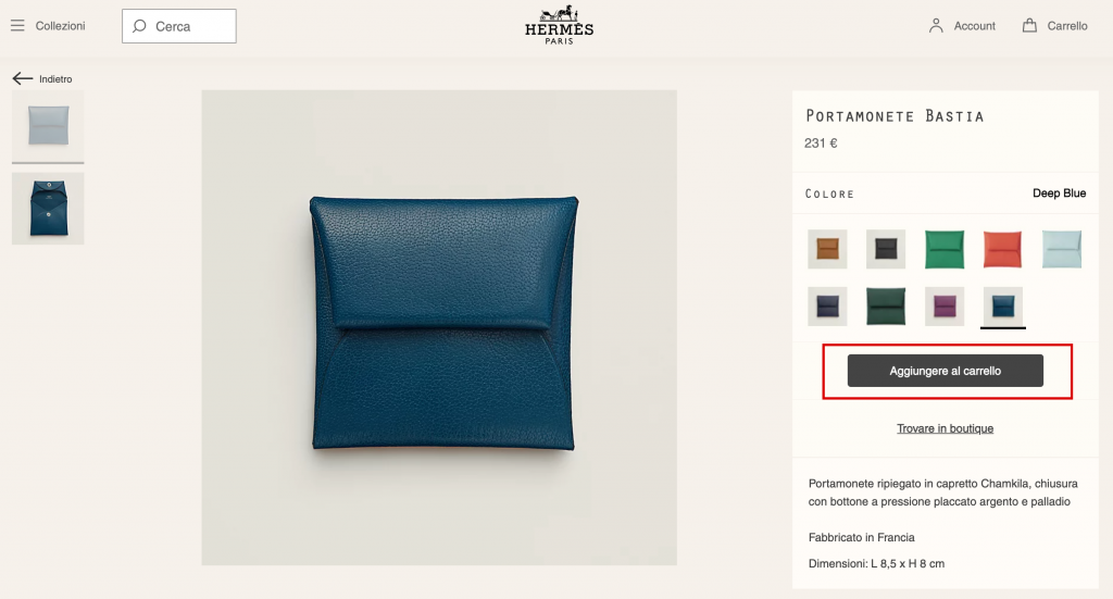 Hermès 官網通常每款商品只有 1-2 個存貨,記得在搶購前先檢查自己是否已登入帳户,若看到心儀的商品才慢慢填寫訂購資料就太慢了。由將商品加入購物車,到付款的過程,只有一分鐘的時間,所以一定要快,過了一分鐘就會被其他人買走了。