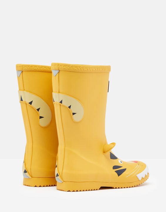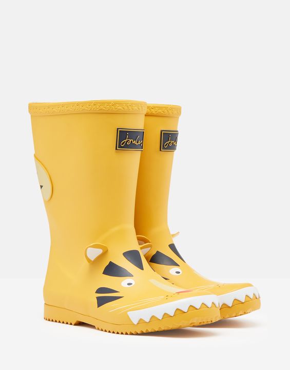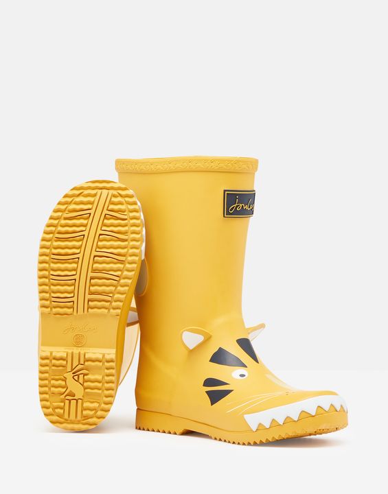 顏色鮮艷的雨靴,尤其是黃色,更能襯托出孩子的天真可愛~鞋頭亦設有趣老虎造型,相信孩子也會覺得有趣~