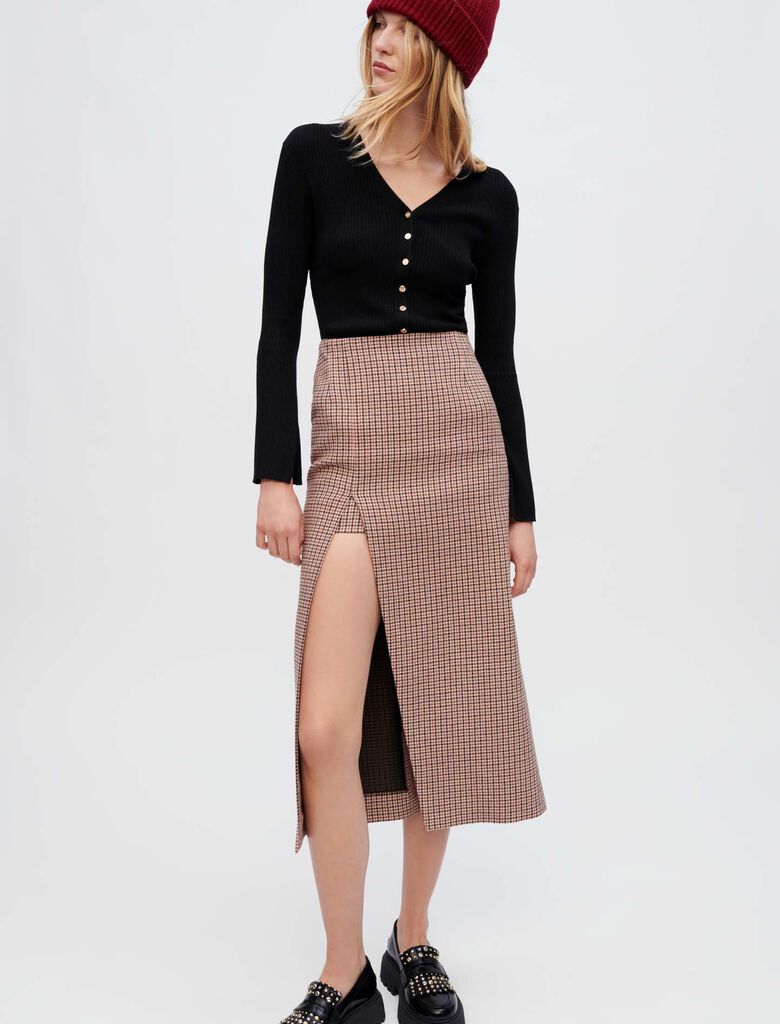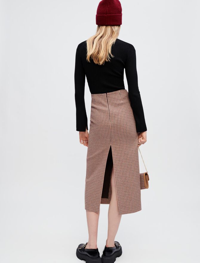 HOUNDSTOOTH MIDI SKIRT WITH SPLIT