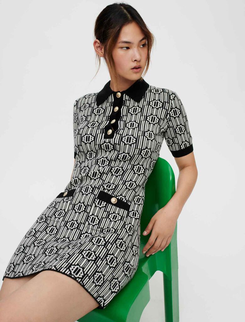 MAJE CLOVER JACQUARD KNIT DRESS