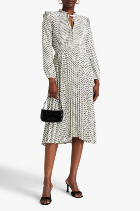 MAJE Pleated printed crepe midi dress