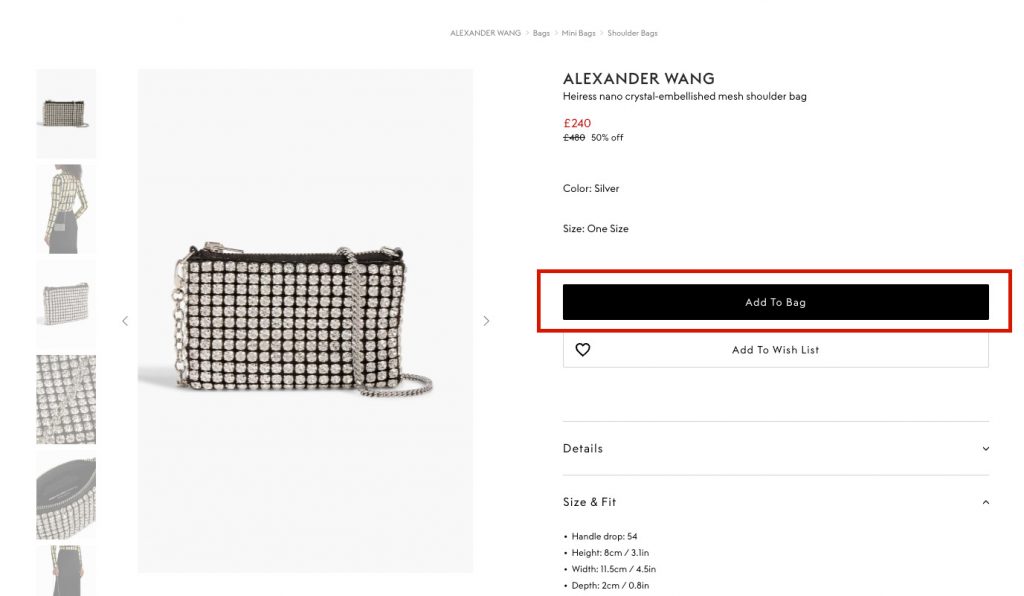 ALEXANDER WANG 的水鑽網眼包在很多時尚博主的 IG 上出現過,佈滿 bling bling 水鑽真的超美der~這款迷你小包可以斜挎,為穿搭增添亮點!