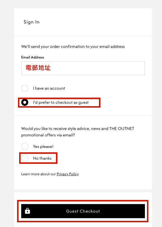 Step 5:輸入你的電郵地址,並點擊以訪客身分支付。