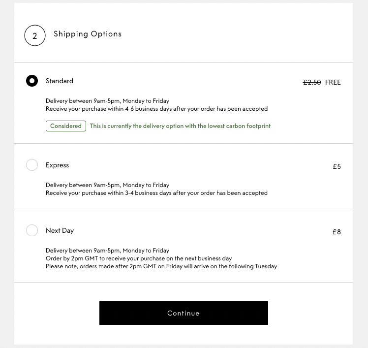 Step 7:選擇標準配送,然後點擊「Continue」。