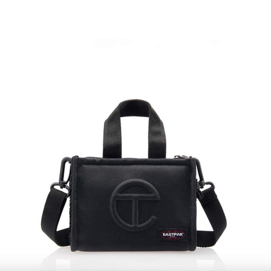 Telfar 與 Eastpak 聯乘的包款,採用戰術帆布製成,配有編織肩帶,可拆卸、調節至適合你的需要,透過壓花徽標還袋款更時尚,並配合頂部拉鍊開合、側網袋,內部附有魔術貼分開隔層。