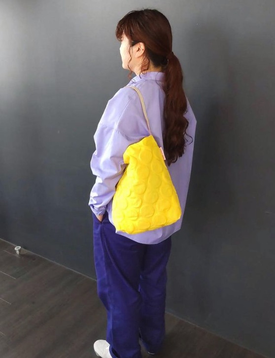 DOTS 系列單肩包,尺寸像枕頭一樣大,喜歡超大容量包包的女生必買!同樣有多達六款顏色選擇,尼龍背帶可調節成側孭、斜孭或手拿的長度,容易跟據日常衣著而作出不同配搭~怕包包太大,同款式還有S/M的尺寸哦!