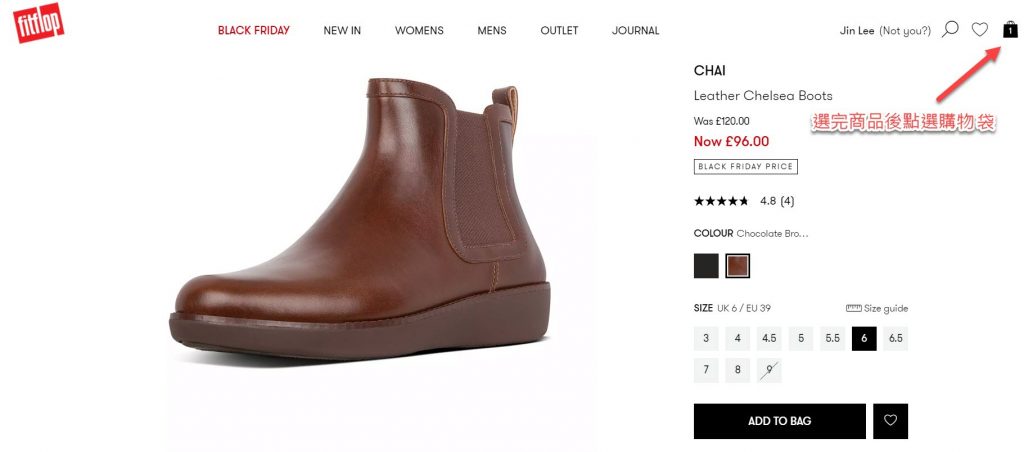 Step 3. 選擇自己喜歡的款式、size、點擊加入購物袋,完成後點擊右上角的購物袋icon。