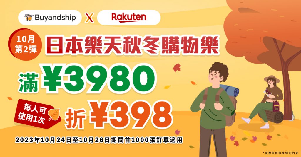 日本樂天10月獨家優惠券第2彈!10月24~26日購物馬拉松滿¥3980減¥398