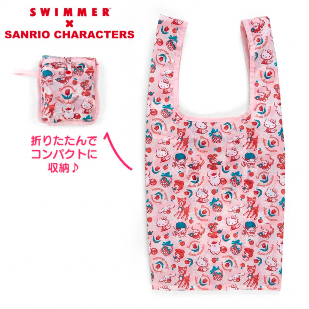 在手牽手鎖匙扣中,角色手上拿著的就是這款禮品袋!融合了SWIMMER的滿版花紋和SANRIO角色,作為環保袋真是少女心十足!