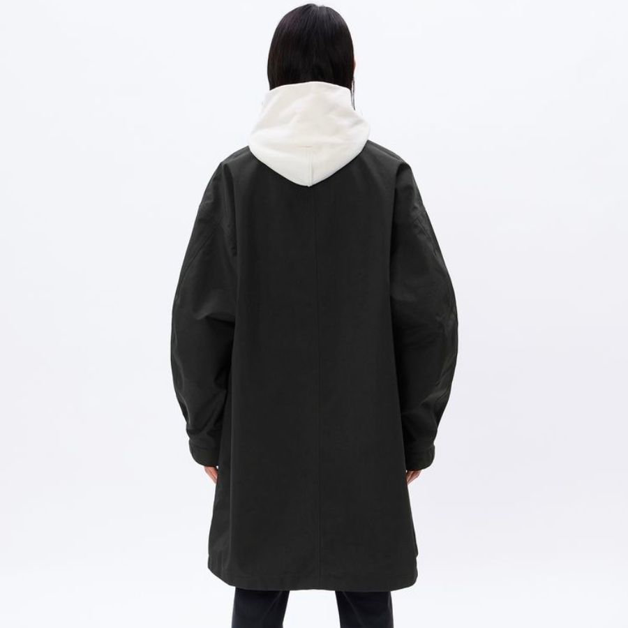 這是一件超大外套,可以穿在蓬鬆羽絨外套外面。由再生牛津尼龍製成,布料手感堅挺、厚重,剪裁很好很有造型感!口袋具有出色的存儲能力超方便!
