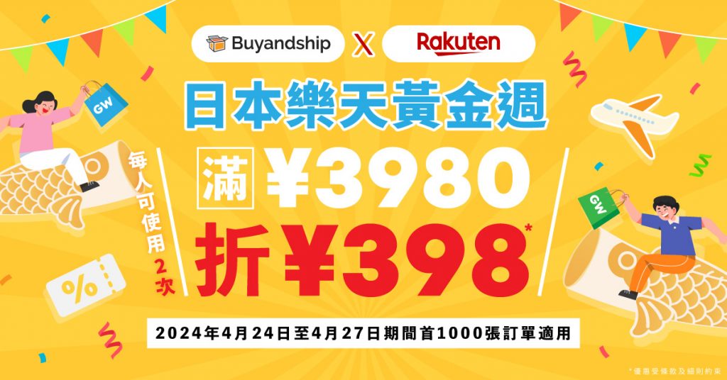 下星期就是日本黃金週,想搶先享受折扣優惠?Buyandship 獨家爭取到日本本土最大購物平台之一樂天市場 (www.rakuten.co.jp) 推出限量 1,000 張的滿額即減優惠券,當中超過 50,000 間人氣店鋪參加,每個帳號可以使用 2 次,好好把握時機入手心頭好!