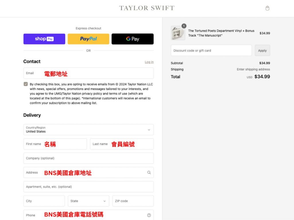 → III. Taylor Swift 官方商店網購教學