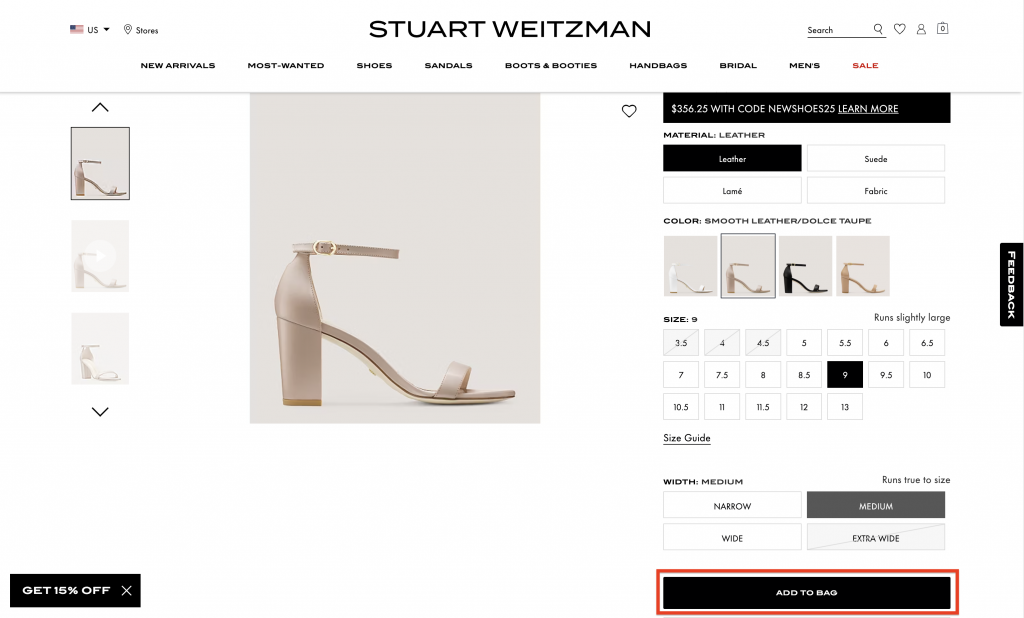 現時 Stuart Weitzman 美國官網大促銷,SW Outlet 夏季美鞋入碼:SUMMER30,低至 3 折 + 額外 7 折,美國境內還免運費呢!