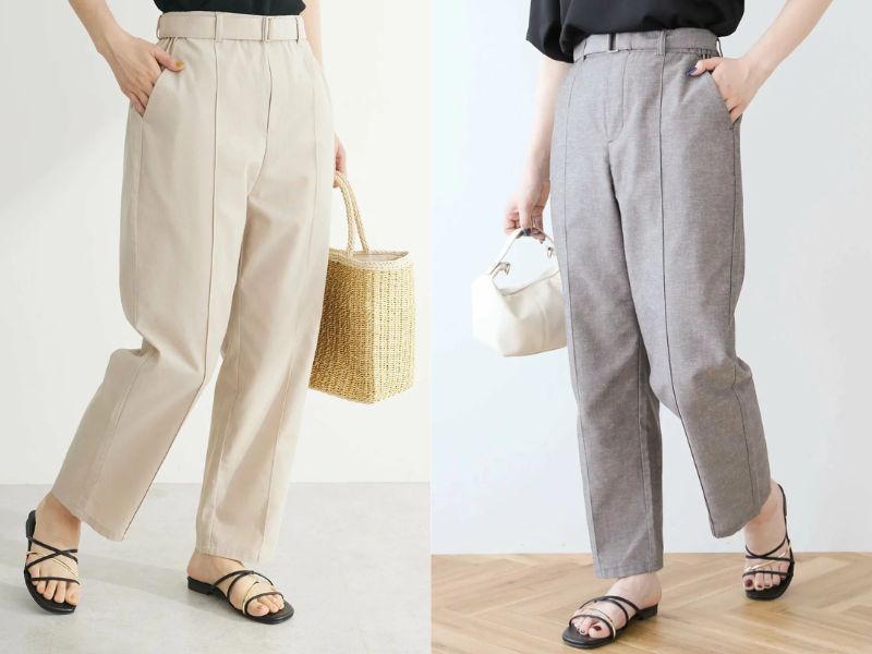 可與上面的西裝外套配成一套,現以41折發售!適合夏季穿著的舒遉適透氣感,錐型設計能修飾腿部線條,打造修長身形。 腰部的同色系扣環腰帶,方便調整腰圍。