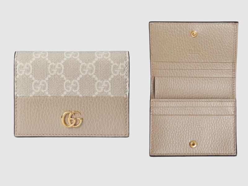 意大利製造,全4色可選。採用品牌經典的米白色與白色GG Supreme帆布,點綴燕麥色光滑皮革飾邊。標誌性的金色雙G標識,搭配5個卡槽、開口式內袋、拉鏈口袋和鈔票隔層,兼具實用性與時尚度。