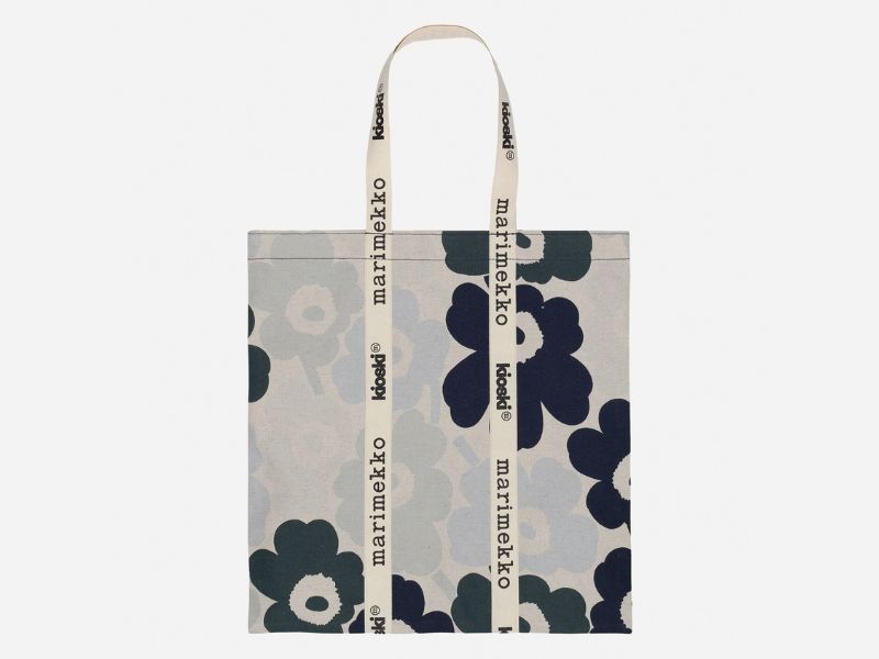 這款布袋採用光滑的棉質材料製成,整個設計使用日本獨有顏色:深藍色、淺灰色、自然白設計而成,Unikko 印花花卉圖案簡單別緻,更是其中一個熱賣款式布袋!