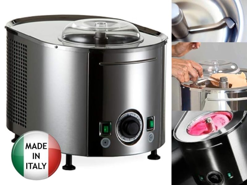 義大利製造的專業級家用冰淇淋機!全不鏽鋼機身,750毫升的不鏽鋼攪拌碗,每小時可製作約2.8升的冰淇淋,操作簡便,只需將食材倒入,按下按鈕即可自動完成。